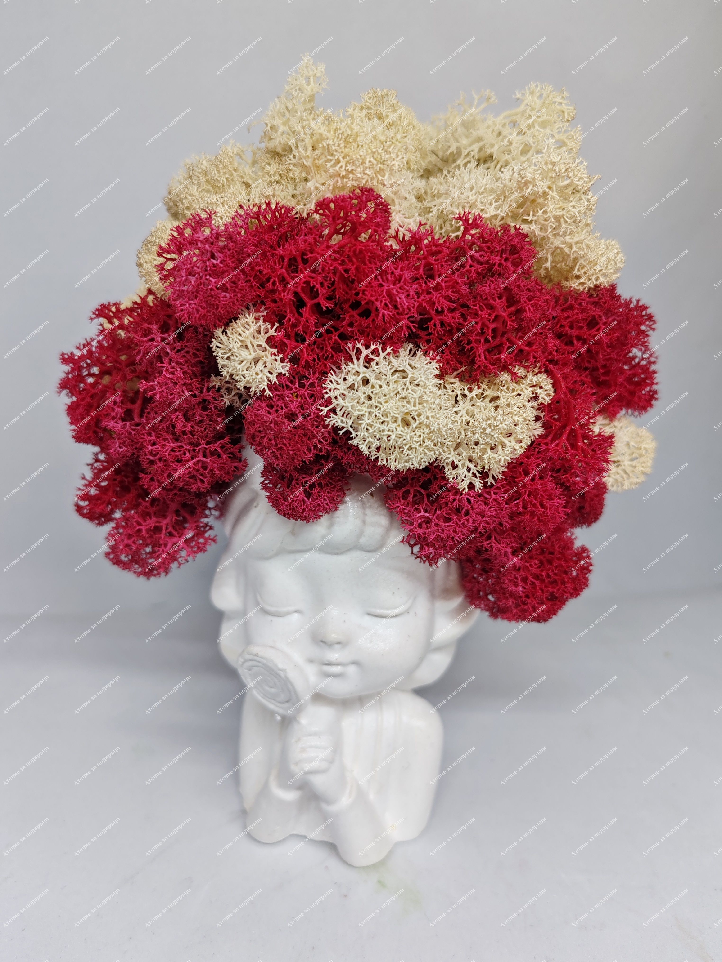 Тази бонбонена кашпа със скандинавски мъх е уникален декоративен акцент и оригинален подарък, който ще зарадва всеки. Кашпата е с дизайн на сладурско момиче, което държи близалка, а декорацията е завършена с скандинавски мъх в бонбонени цветове