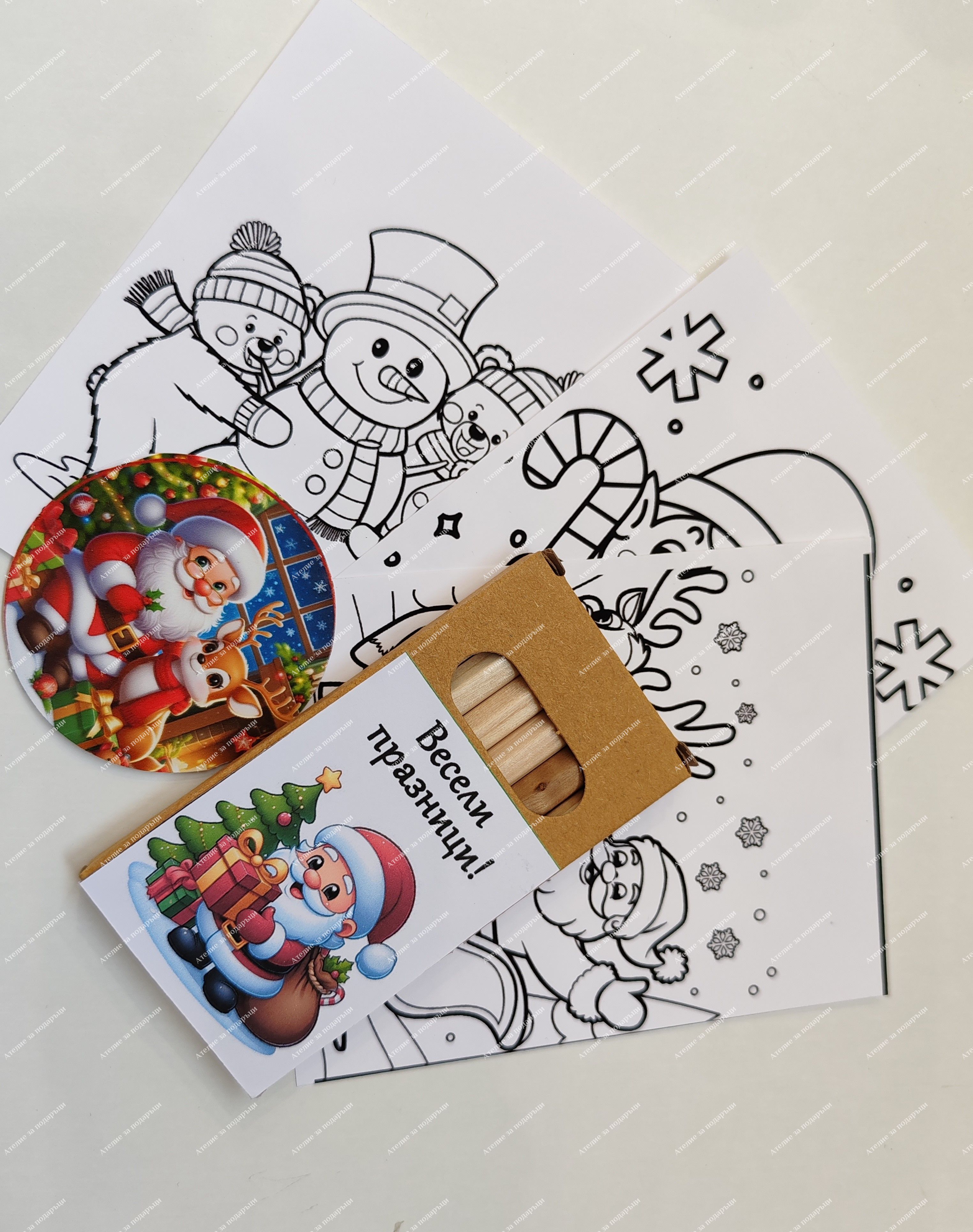 Търсите коледни подаръчета за детска градина, които да зарадват децата и да внесат коледен дух в класната стая? Нашите комплекти са специално създадени за малките ученици и включват цветни моливи на коледна тематика с персонален надпис, 3. бр коледни картинки за оцветяване и коледен стикер – идеалният подарък за всяко дете!