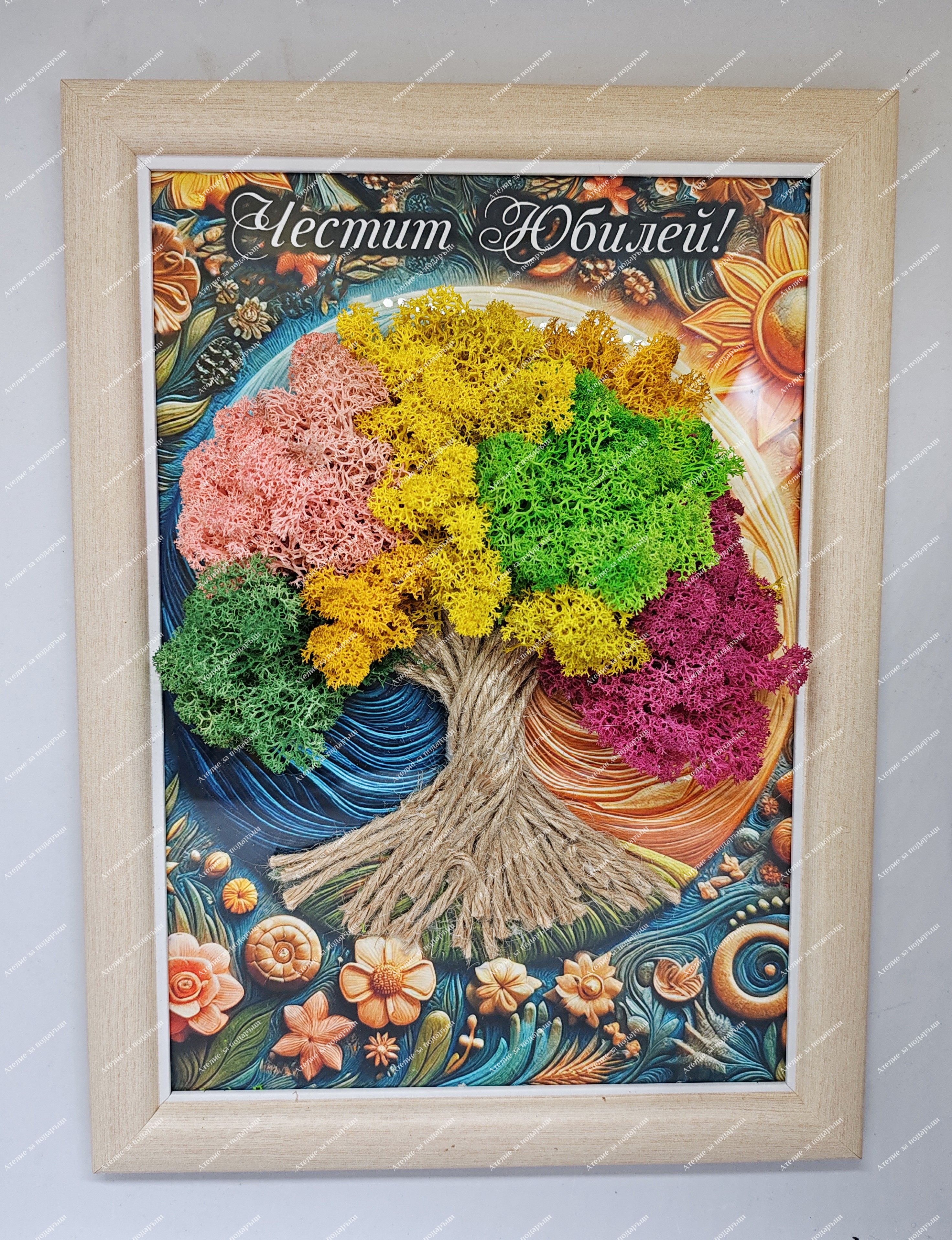 Перфектен подарък за всеки повод – рожден ден, имен ден, сватба, юбилей или нов дом. Може да добавите и персонален надпис по ваше желание, за да направите жеста още по-специален. Жива картина дърво със скандинавски мъх – перфектното допълнение към всеки дом или офис.