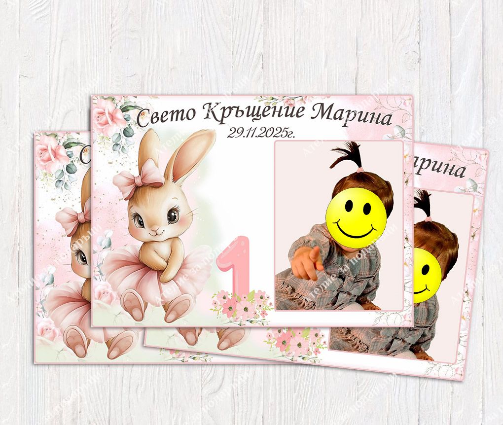 Очарователните магнити със снимка „Зайче балерина“ са прекрасен начин да зарадвате вашите гости и да запазите спомен от най-специалните семейни моменти. Подходящи за кръщене, първи рожден ден, погача или всяко мило детско тържество, тези магнити съчетават красив и нежен дизайн с практичност и персонално послание.